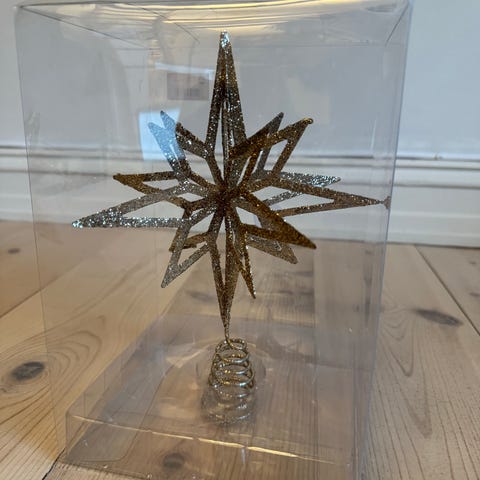 Ubrukt toppstjerne til juletre selges. Stjerna er fra Nille og er i sølv med glitter.