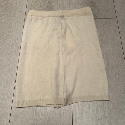 Lekkert skjørt fra Bik Bok i størrelse L. Nesten ikke brukt. Akryl/ullblanding. Foret øverst. Glidelås i siden. Bredde i livet ca. 39 cm. Lengde ca. 41 cm.
