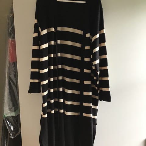 Lett cardigan viskoseblanding fra HM, str. S. Svart/hvit horisontale brede striper.