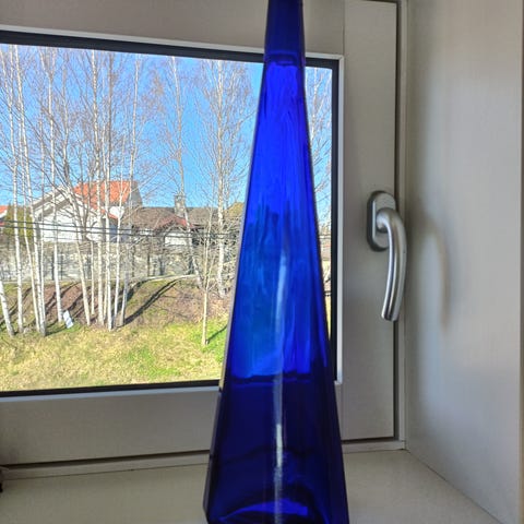 Pen glass vase. Det gjør seg godt med lys bakfra, i en vinduskarm f. eks.Fin stand og uten skader.