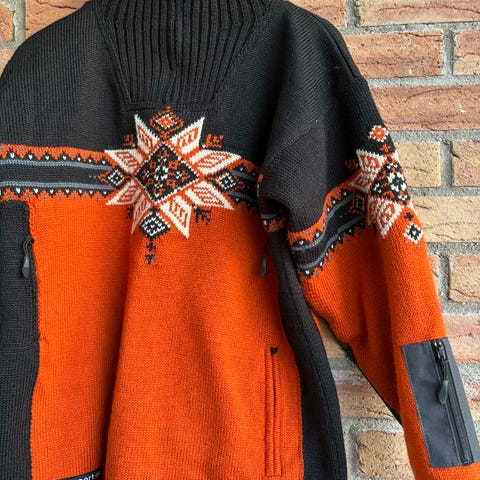 Flott Svalbardgenser til salgs. Den er kun brukt 2 ganger. Den er grå og rød med hekter i halsåpningen. Svært varm og god genser. Målt over brystet er den ca. 67 cm. Fra skulderen og ned litt over 70 cm. Se bildene. Unisex modell, så den vil passe både til herre og dame. Hentes i Kvæfjord eller kan sendes som Norgespakke (kun fastlandet) om kjøper betaler porto. Bruker ikke fiks ferdig. Forhåndsbetales med Vipps. Søkeord; Svalbard, Longyearbyen, 78 grader nord, Svalbardgenser, ullgenser, Svalbard genser, Scandinavian Knitwear, Scandinavian Score, Made In Norway, sweater.