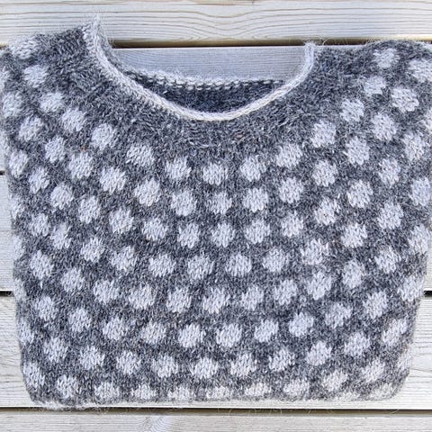 Nydelig islandsk genser i tykt garn, Alafoss lopi, str M (passer str 38 - str 42) nystrikket for salg