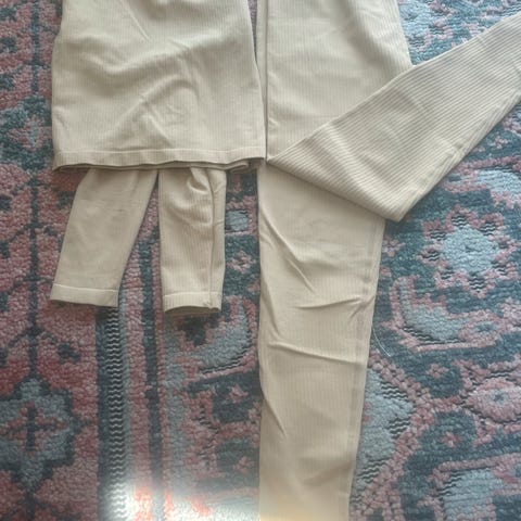 Tights og crop-genser i utrolig mykt og behagelig stoff. Settet er fra HM. Tightsen er størrelse M og toppen er størrelse S.