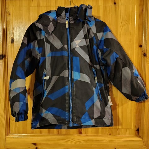 Reima vinterjakke der armene kan tas av om det blir en varm vest. Funksjonell og god jakke. Kan også fungere som et mellom lag. Ingen skader. Vært og er storfornøyd med Reima. Slitesterkt og varm for norske forhold.