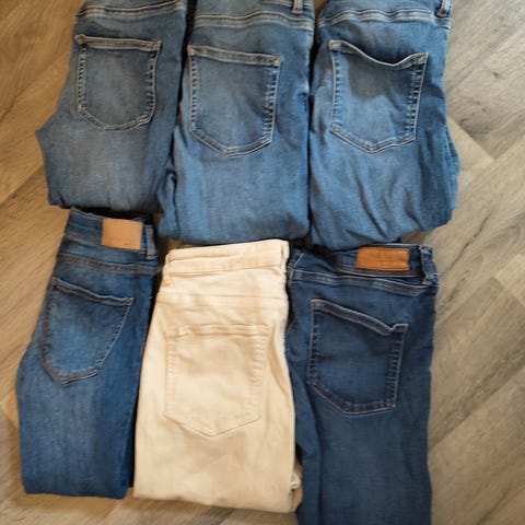 Fine vide jeans Girlfriend Gigi str. XS selges. Brukt bare 1 gang. Som ny, ikke noe bruksmerker. 99% bomull, 1% elastan.
