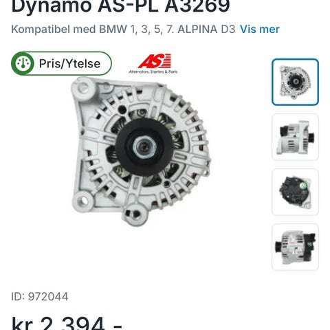 Vekselstrømsdynamo Volvo b18 b20