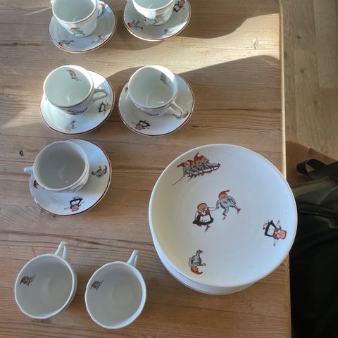 Middagsservise (inkludert kakeasjett og kaffeservise) til 4 personer.