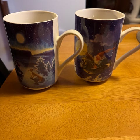 - den ene kaffekoppen mistet hanken sin og den er limt på igjen (se bilde).