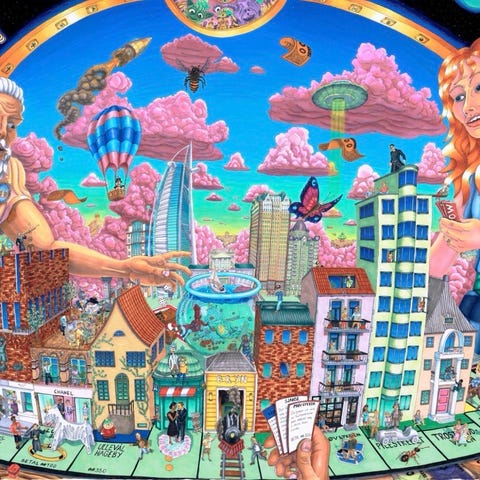 Gods DNA av Ole Bjørn Valen, er en levende og kompleks fremstilling som blander religiøse og mytologiske elementer. Komposisjonen er travel og full av symbolikk, og kombinerer intrikate fortellinger og ikoniske figurer fra forskjellige bakgrunner.