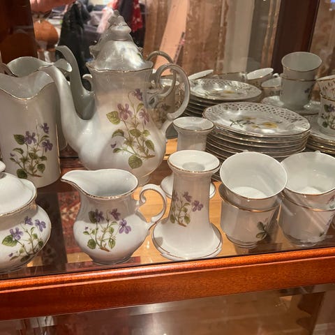 Karaffelen er 19 cm høy og glassene er 5,5 cm høye og 3,5 cm i diameter