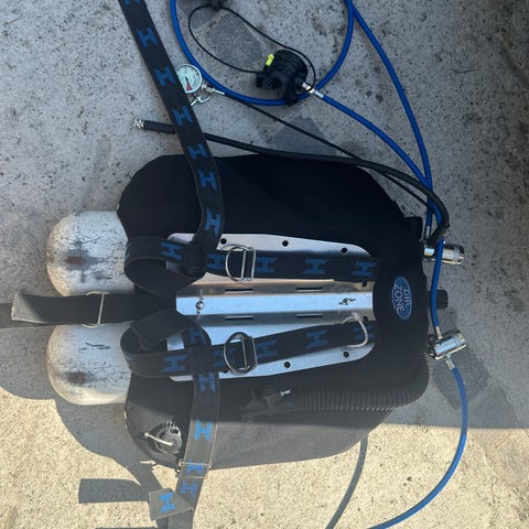 Er noen år gamle, men har ligget innpakket og mørkt i dykkeboden.