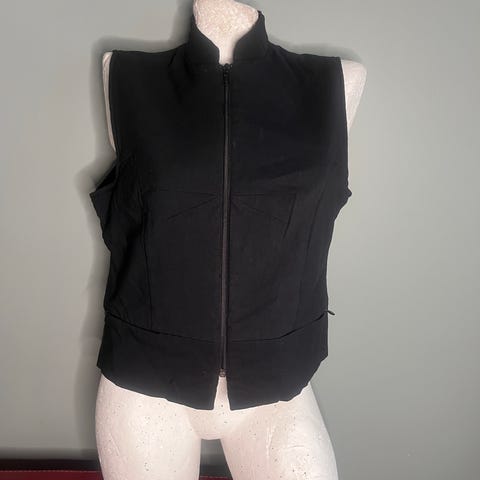 Vintage ca 1970-talls / 1970s blå vest, størrelse ca medium. Vesten har et par hull nederst som vist på bildet