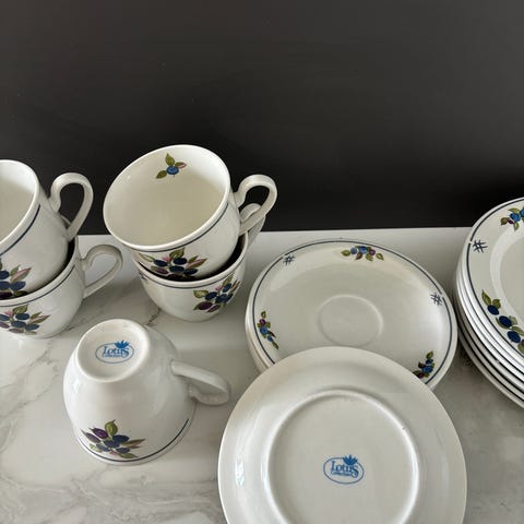 Betalt plassering2 500 krNydelig Mokkaservise fra Figgjo Flint, 5 kopper med fat i pastell med gulldekor.StraumeLegg til som favoritt.