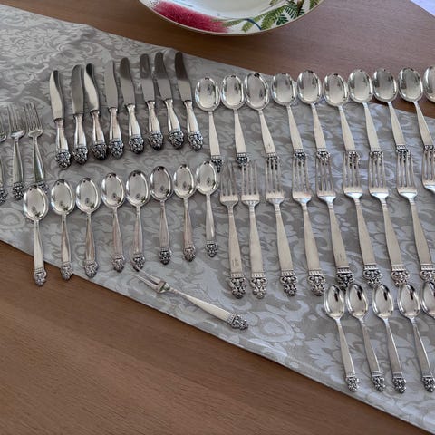 Sølv og sølvplett bestikk deler, bla Tele og Vidar