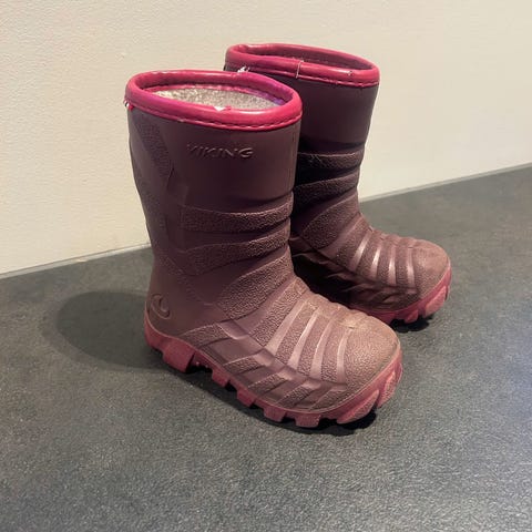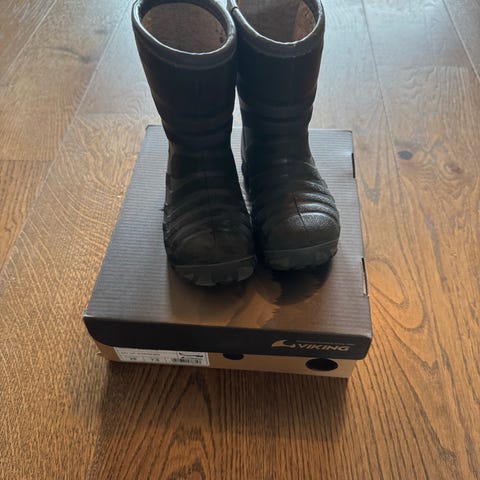 Pent brukte vinterstøvler fra Viking. Litt slitt øverst på høyre støvelskaft, men ingen slitasje innvendig. Ullsåler følger med.