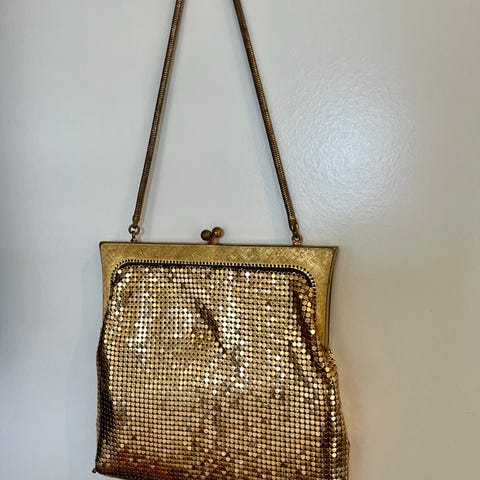 Selger en unik,gammel selskapsveske i glitrende gull! Dette er arvegods, og jeg kan ikke se at den har vært brukt! Den er belagt med perler, som danner en blomst! Vet ikke alder, bare at den er meget gammel….og vakker! Den kan sendes i posten! Hbo