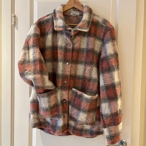Lite brukt. Nypris 1099kr. https://villoid.no/products/viksa-jacket-short-wool-grey-camel-checks