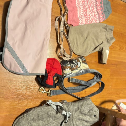 Halsbånd ( brukt på 35 kg tung hund) og leiebånd ( tysk) ca 5 meter.