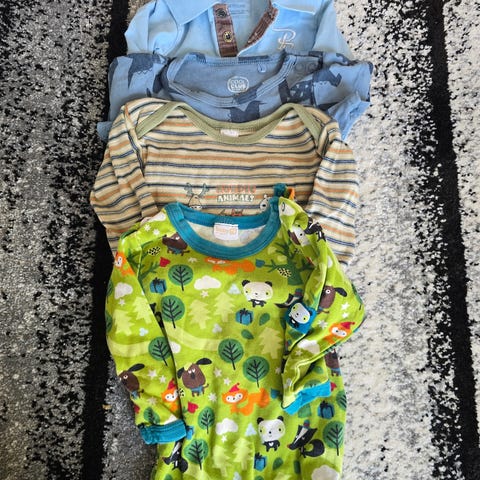 Stripete blå og hvit body fra Cubus i Strl 74, selges for kroner 40.