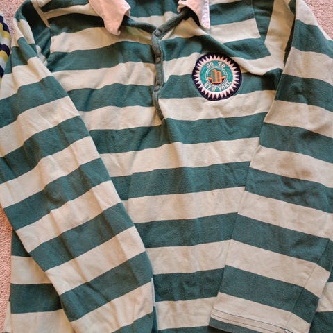 Dette er en genser str 134,som er ca 9 år.Den er ikke brukt.Farge grønn/hvit.Selges kr 30