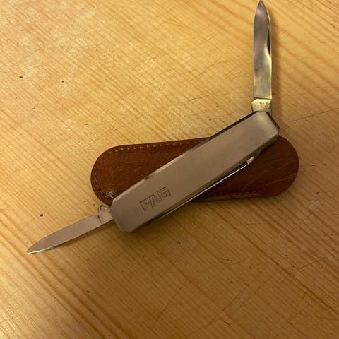 Multiverktøy av sjelden slag med skinn futrole