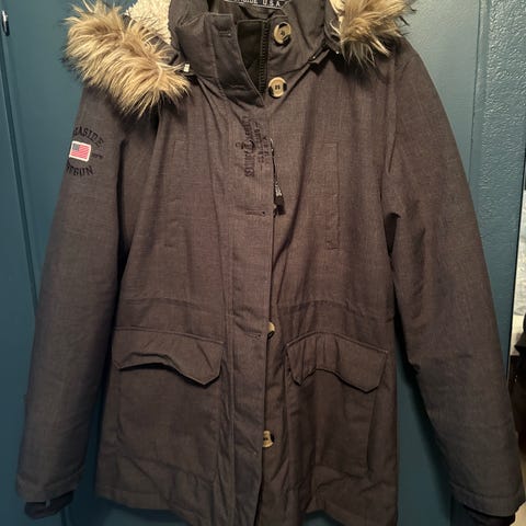 Pent brukt flott parka fra Ahkka fra Elllos. Lite brukt. Varm og god vinterjakke. Mørk blå farge med lilla for.