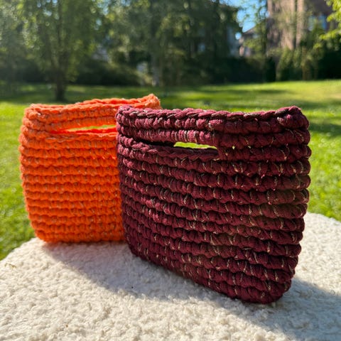Åpning og lukking av vesken ved hjelp av snor på begge sidene.