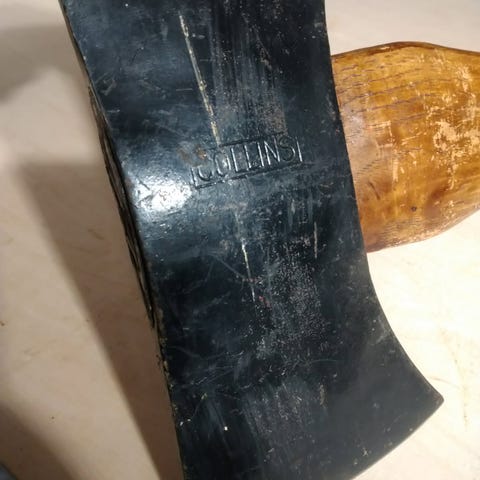 Verktøy etter bestefar. Solid kvalitet. Sagen er av merke Sandvik. Øksen av merke O. Lie. Kan pusses,så ser de penere ut. Fungerer likevel like bra.