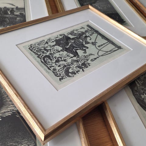 Format 23.5 x 17.5 cm. Rammet inn med passepartout.