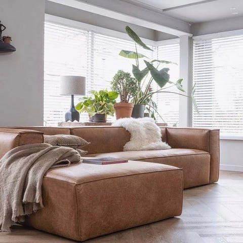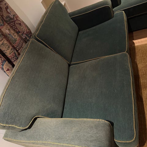 2-seters, rød sofa fra kvalitetsmerket Brunstad til salgs, inkludert to puter. Sofaen er veldig god å sitte i. Den er brukt, men i fin stand.