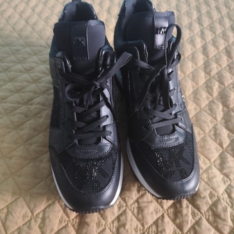 Wortmann sneakers i svart og pewter farger, størrelse 36. Skoene har en hvit såle med godt mønster for grep. Designet inkluderer både lisser og glidelås for justerbar passform. Materialet kombinerer tekstil og syntetiske elementer.