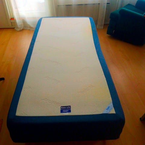 Tre madrasser med Biltema dobbeltvirkende pumpe.