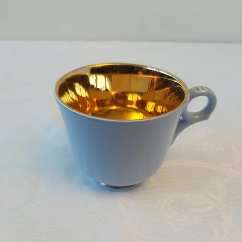 koppen er 5 cm høy og 7,5 cm i diameter, skålen er 11 cm i diameter og asjettene er 15 cm i diameter