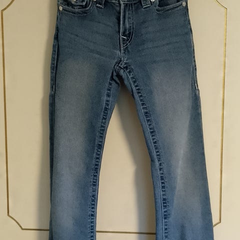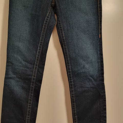 Vintage background jrans med kule detaljer. Jeansen fremstår som ny. Størrelsen Xl men lite i str. Passer large