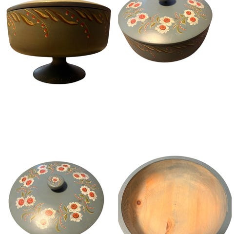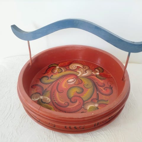 Rosemalte, håndlagde kvalitet fra Norge.. Gamle og sjeldent pene malte ting. Pent brukt,. Se pris under hvert bilde.