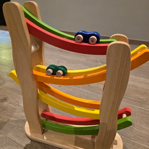 Pent brukt stor bilbane med to tilhørende biler. Gøyal bane med ulike bakker og loop.