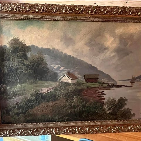 Malt trau til å henge på vegg.