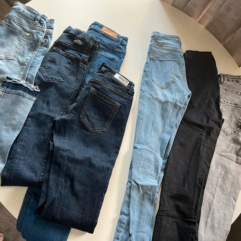 Jeans fra Cubus, Slimming Sydnee, Emma, Monki, Shein flare high rise, Gina Tricot wide, Zara straight legs high rise og Only.