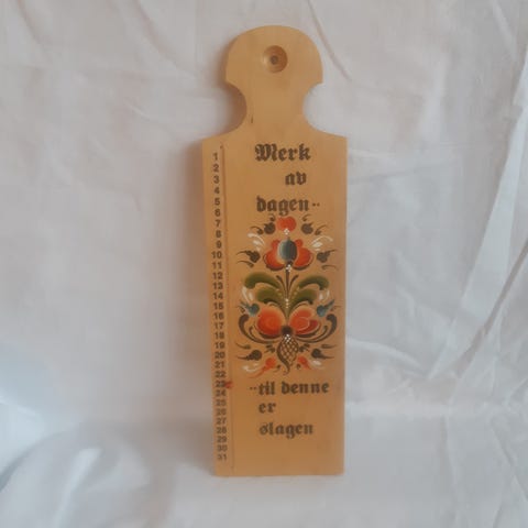 Gammel keramikk pynt, brukt til kalender i 1965