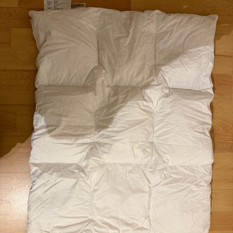 Pent brukt, varm dundyne i str.65 x 80cm, vekt 120g. Kan vaskes på 60grader. Spesielt godt egnet for husstøvallergikere.
