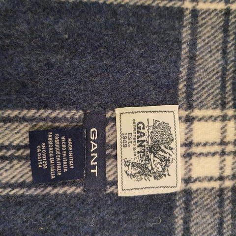 Maritimt blått og hvitt skjerf fra Gant. Må vaskes/ bruk flekkfjerner