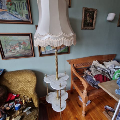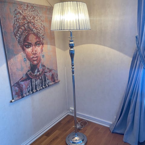 Dette er en kinesisk lampe fra andre del av 1900 tallet. Stor og flott hvit lampeskjerm.