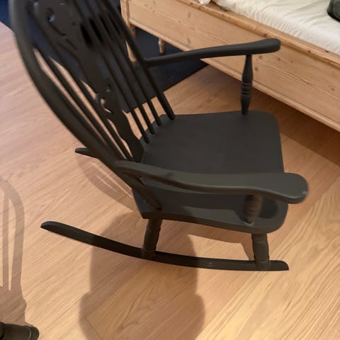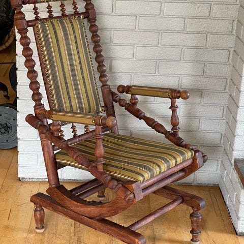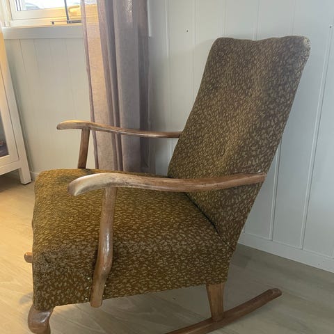 Vintage amerikansk gyngestol. Antagelig fra tidlig 1900-tallet/sent 1800-tallet. Hel og pen, men putene bør trekkes om.