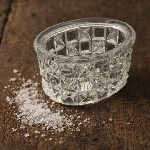 Saltkar i glass. Selges fordi den ikke blir brukt. 12,5 cm lang og 7,5 cm høy. Må hentes i Kristiansand eller sendes om kjøper betaler frakt.