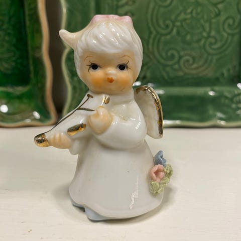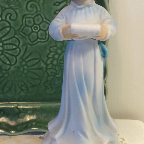 Jente i bønn, gammel gipsfigur