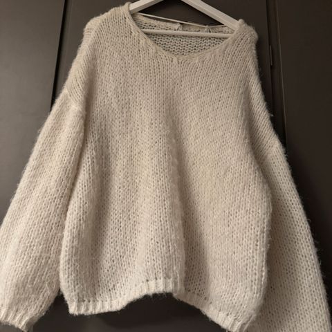 Elegant, hvit/beige strikkegenser, str. M/L (kan passe forskjellige størrelser)