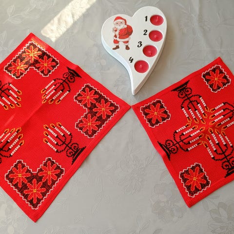 Advents duker, lys div lysholdere med advent rose lys.