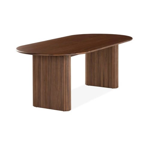 Det er plass til tre spisestoler på hver side, eller to for et mer luftig uttrykk. Har også to tilleggsplater i hvitpigmentert oljet massiv eik som kan festes på hver siden. Hver plate er på 50cm. Bordet kan da bli 280cm.