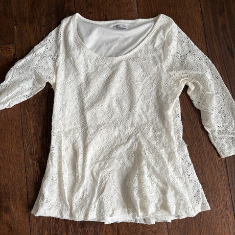 T-skjorte / topp fra Cubus i størrelse 40. Vil sei den passer L også. Begge glidelåsene fungerer, litt misfarging på dei grunnet alder.