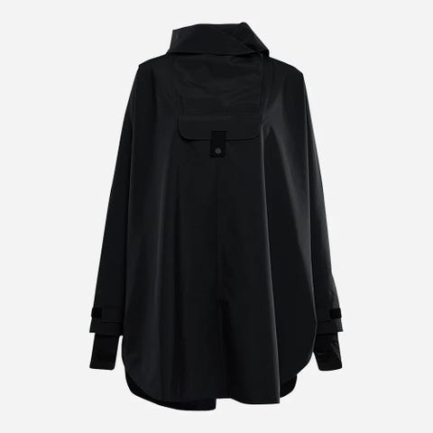 Kun brukt en gang, logoen på siden har gått litt av. Fikk litt sminke oppe i halsen se siste bilde. Helt perfekt for festivaler, eller når man ikke ønsker at det flotte antrekket blir vått. Er str L/xl men vil si den kan passe de fleste ettersom det ikke er et plagg som er ment til å sitte etter mål.